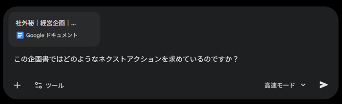 そこで私たち吉積情報では、単に質問を投げるのではなく、AIに「深い文脈」を持たせるための試行錯誤を繰り返しました。具体的には、Googleドライブと連携させ、プロジェクト固有の仕様書や過去の膨大な提案書を直接Geminiに読み込ませる手法の導入です。