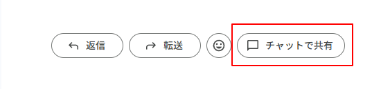 ↑メール下部に表示される「チャットで共有」から、共有したいユーザーを選択して、メールを共有をすることができます。