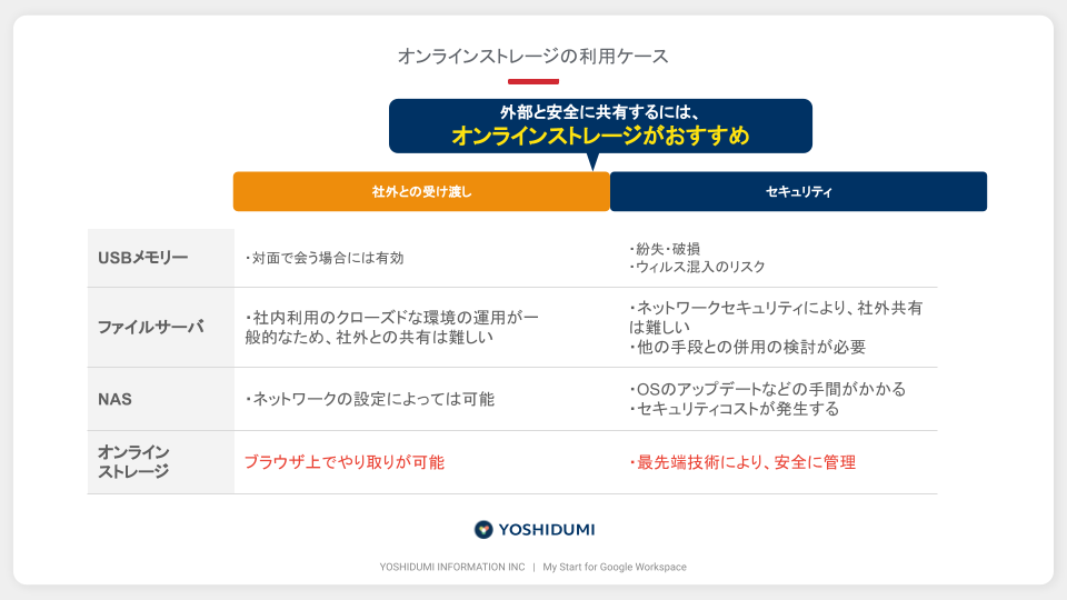 Google ドライブ 、One Drive 、box 、 Dropbox の4大ストレージについて網羅的に知りたい方向けの資料です。