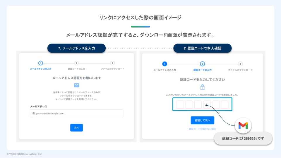 2. 受信者は Google アカウント不要。メール認証で社外とも安全なファイルの送受信が可能